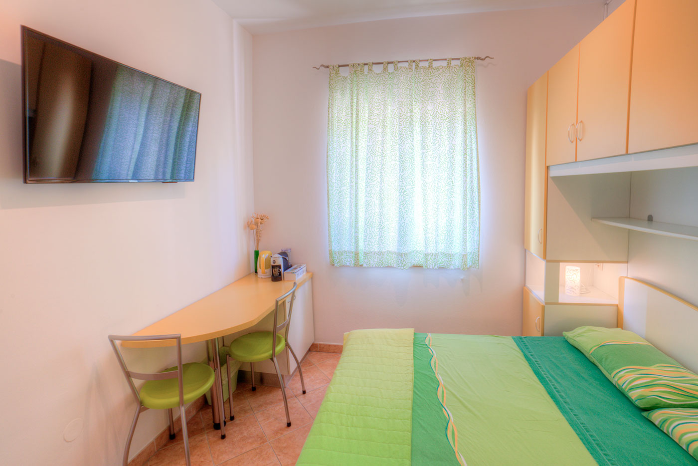 Studio apartman 4 se nalazi u prizemlju, a sastoji se od kuhinje, kupatila, sobe u kojoj se nalazi ležaj na razvlačenje za 1 osobu i terasom koja ima pogled na more. Apartman je klimatiziran. Površina apartmana je 28 m2 + terasa 20 m2.